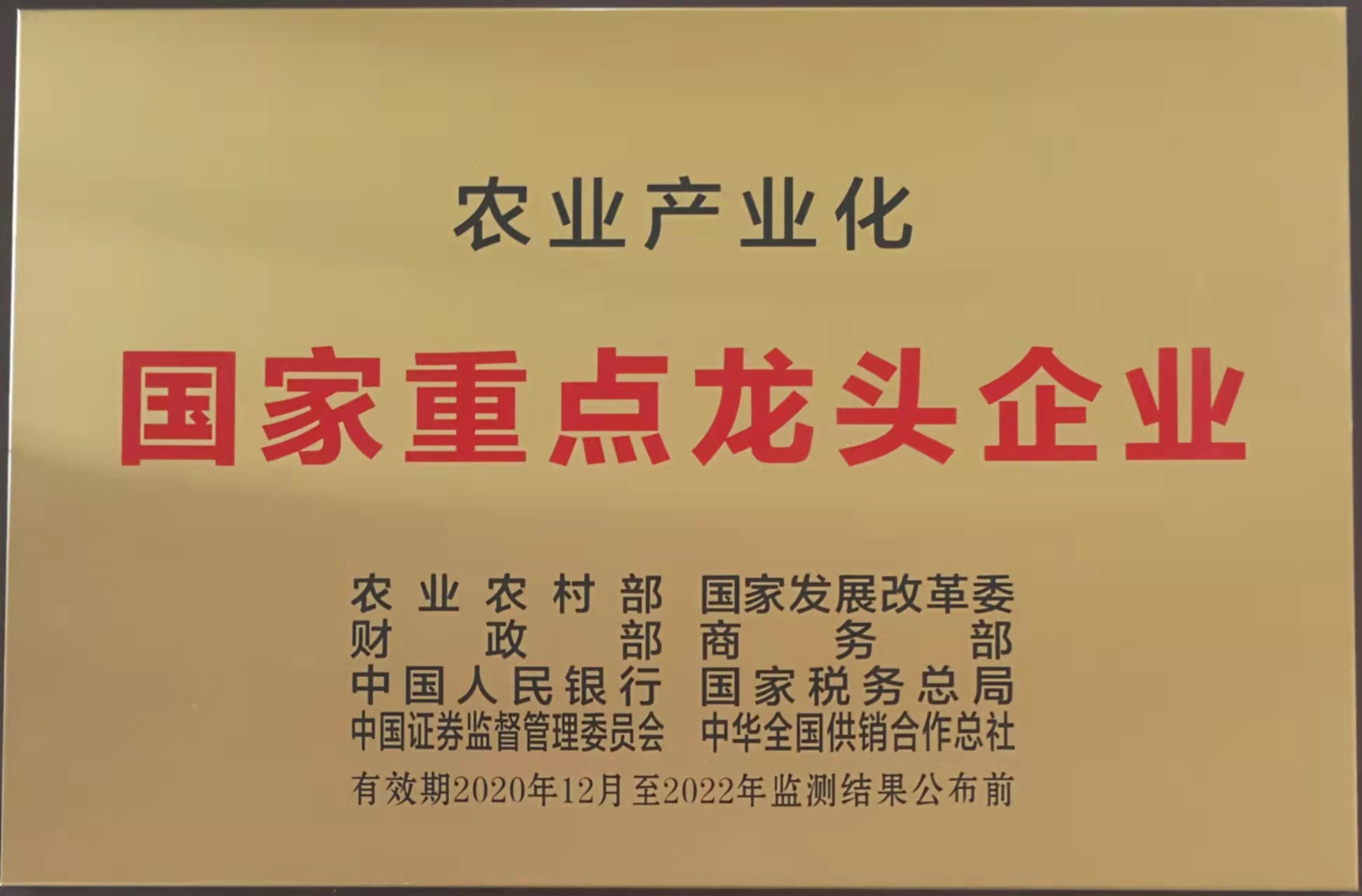 農業產業化國家重點龍頭企業(有效期至2022年)